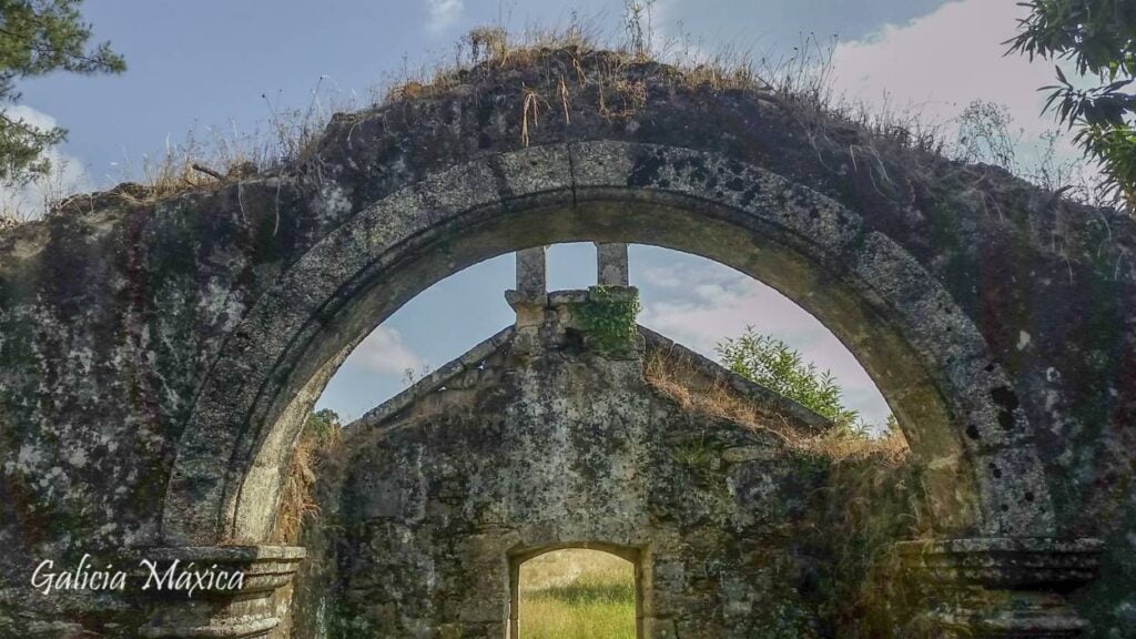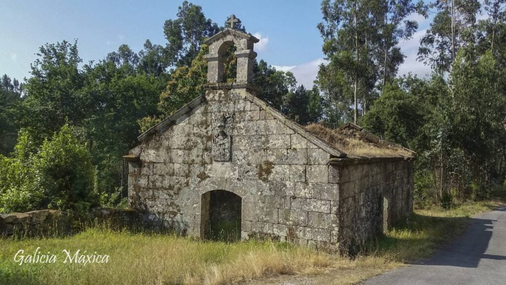 La capilla se localizaba junto al camino fuera de los muros del pazo y aunque pertenecía a la familia también era utilizada por los habitantes de la parroquia. Es de planta rectangular y fue ampliada en el año 1778 por un sucesor de la familia llamado Felipe Antonio de Avalle Ponce de León, tal y como nos cuenta una inscripción en los restos de la iglesia.