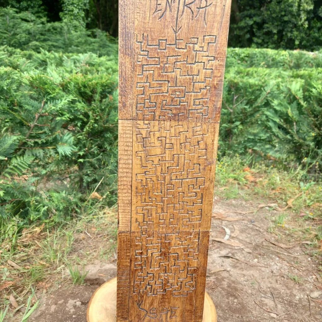 En el año 2017 en el ayuntamiento de Vilarmaior (A Coruña) se inaugura la Ruta de los Petroglifos, dando así a conocer la mayor concentración de petroglifos de Galicia. En este entorno rural, alejado del estrés diario y junto a este mágico lugar decidimos plantar los más de 4.000 árboles que dan forma de cruz celta al laberinto más grande de la península (6120 m2).