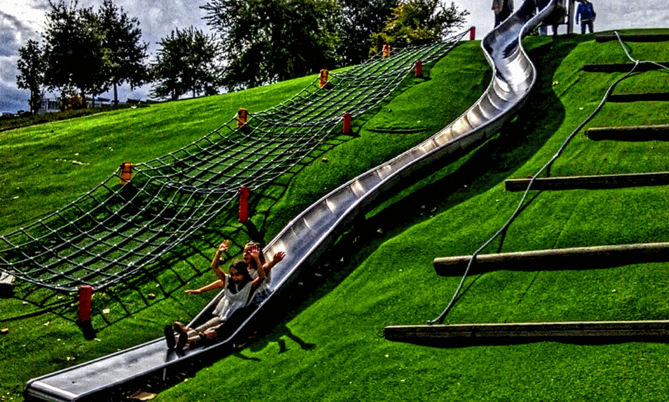 Nós o visitamos este sábado encántanos pola sua orixinalidade e porque esta nunha zoa verde de máis de 6.000 metros cuadrados con columpios que tamén son para nós, así que, acompañamos os xogos das pequenas, verdade?