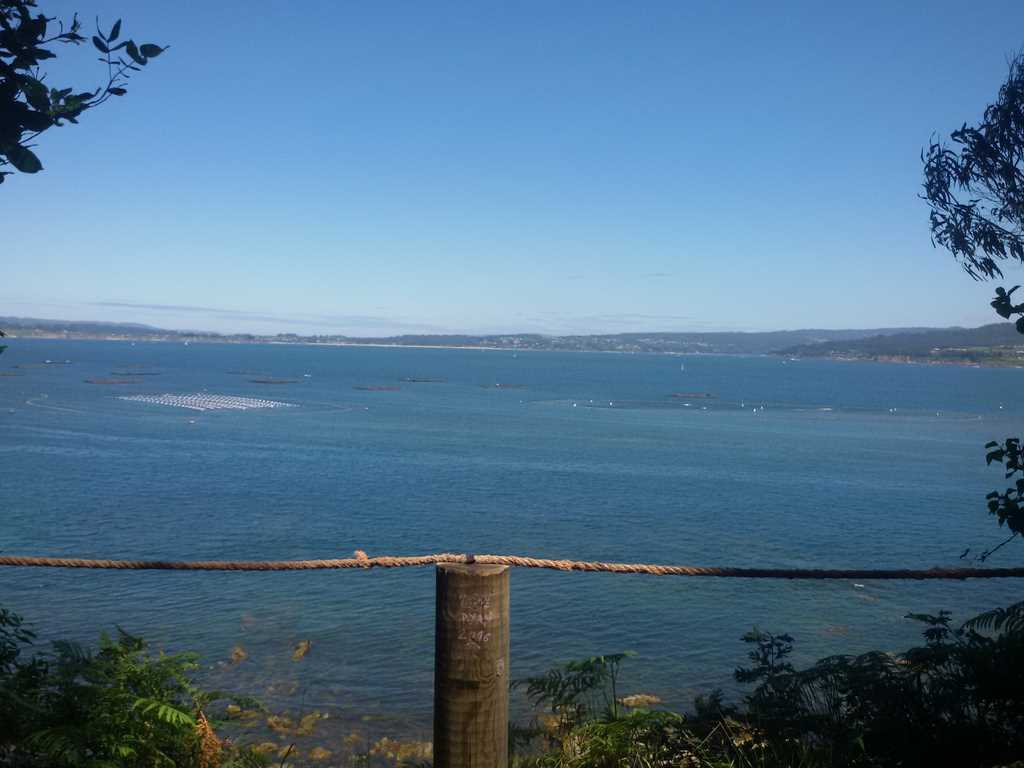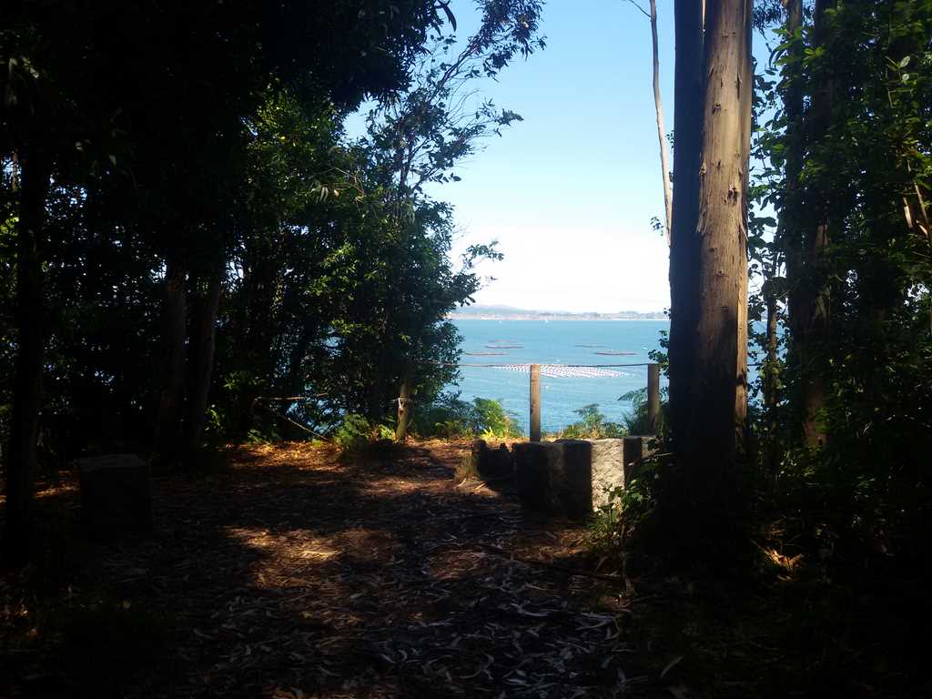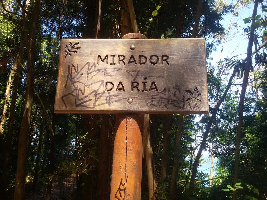 Nos adentramos por el bosque siguiendo el sendero perfectamente señalizado y nos encontramos con dos miradores desde donde vemos la ria de Sada.