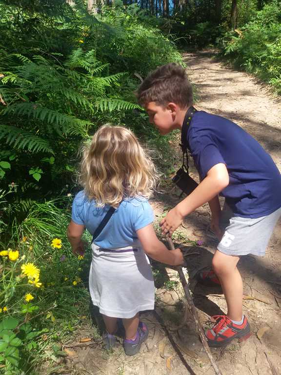 A medida que seguimos caminando la vegetación se va espesando,es un bosque emocionante. …Samuel y Sabela disfrutan muchísimo. …