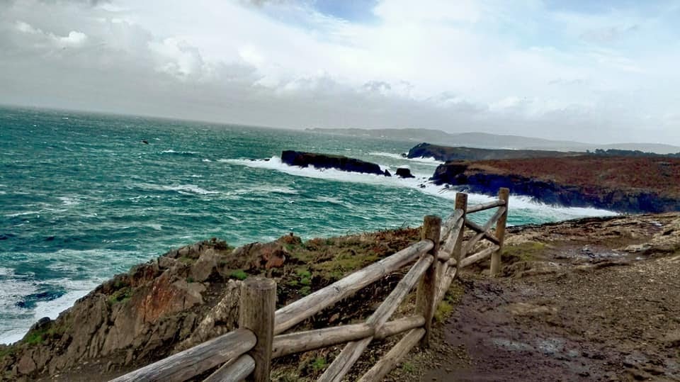 La lluvia nos dió una tregua para poder disfrutar de un mar algo revuelto, y que adornaba nuestros pasos con sus saltos a lo lejos.